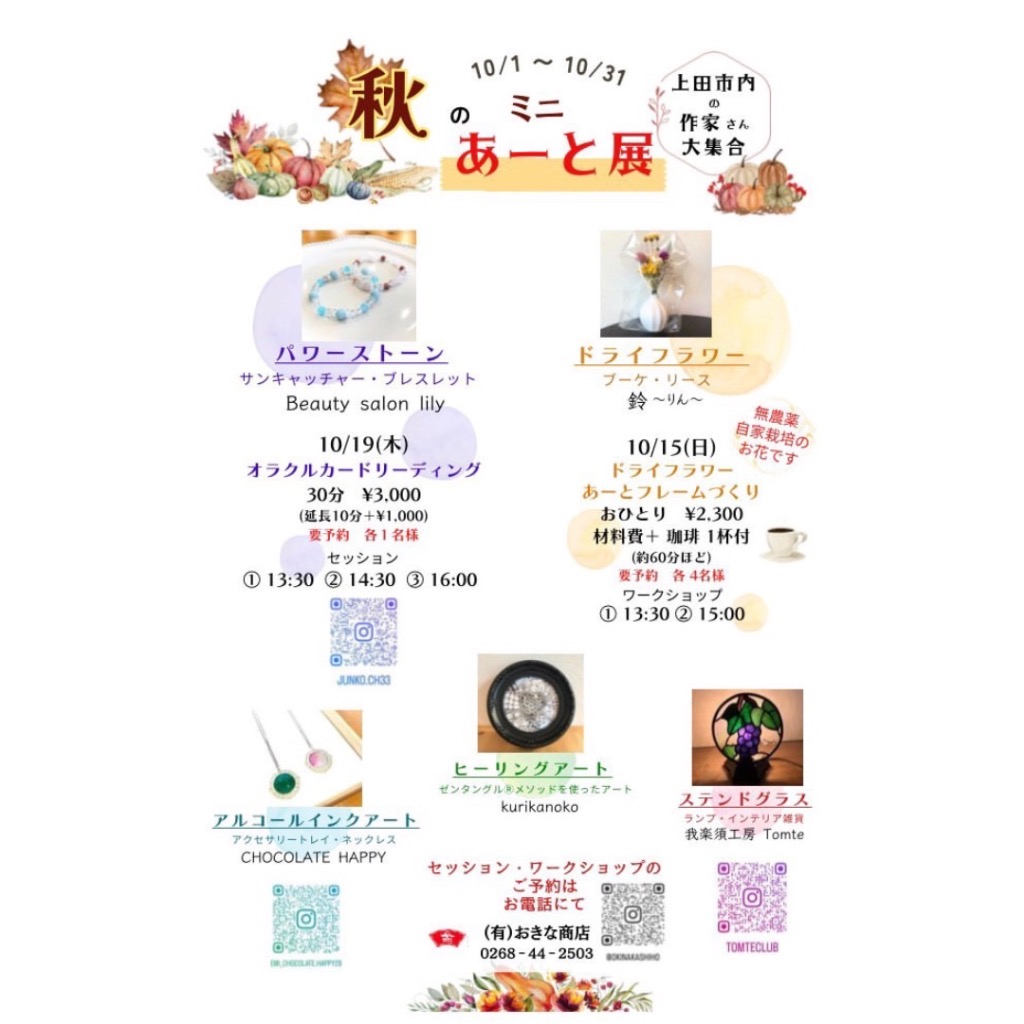 秋のミニアート展は他にも作家さん達の素晴らしい展示やワークショップもありますので、是非お出かけください😊💓