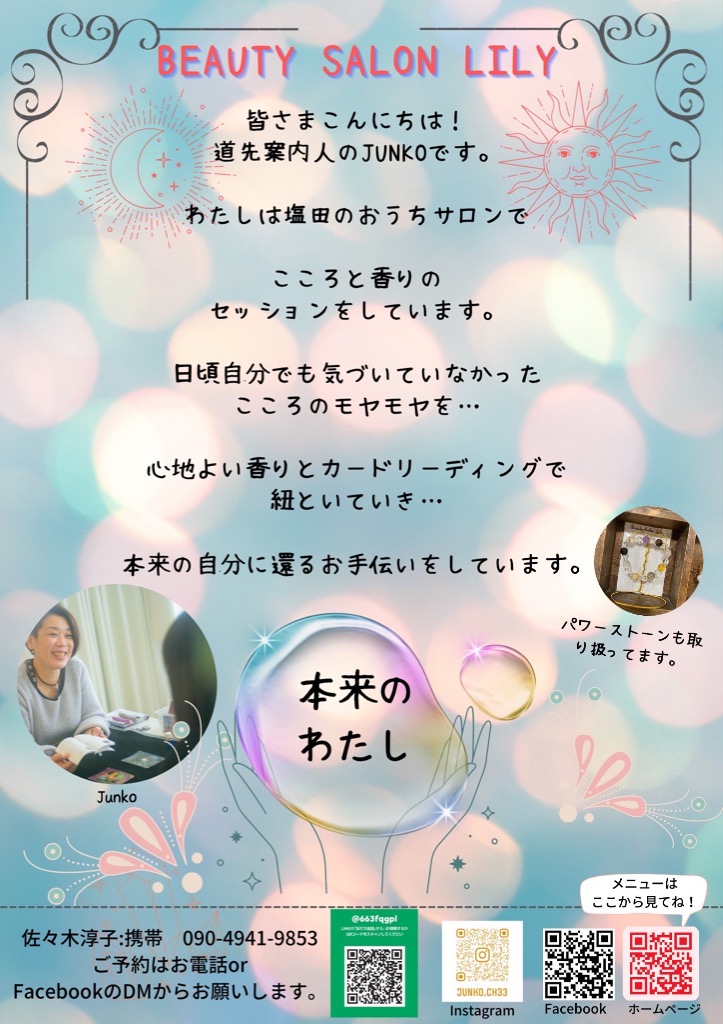 上田市でアロマ&カードリーディングをしているBeauty salon Lilyの佐々木淳子です。